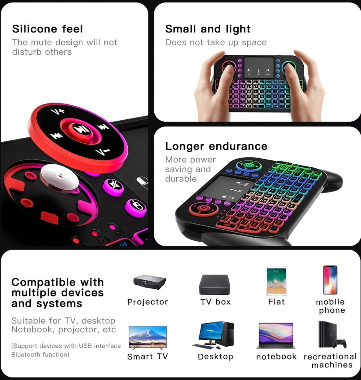 Mini Wireless Backlit Keyboard 2.4Ghz + BT 5.0