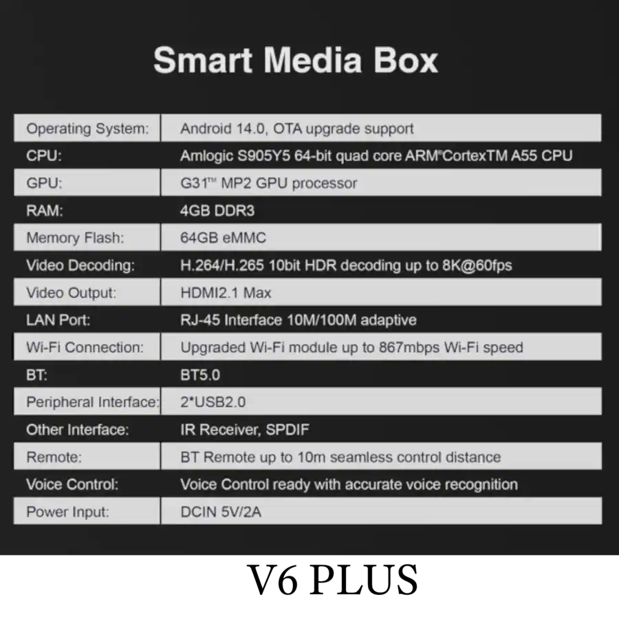 Featuring the latest Android 14.0 system, enhanced visual performance, and a brand-new backlit remote, the V6 Plus sets a new benchmark for premium home entertainment.